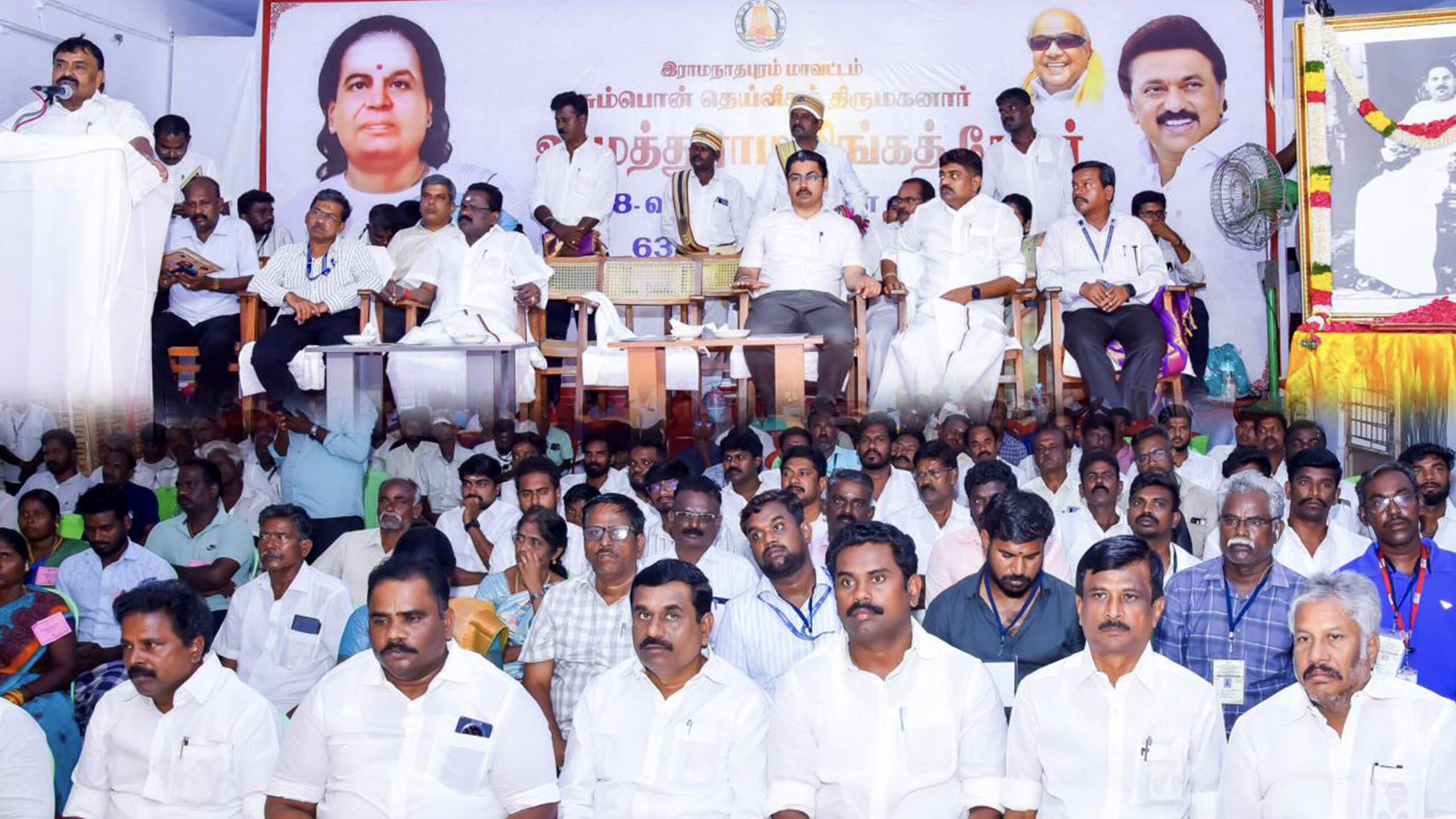 பசும்பொன் முத்துராமலிங்கத்தேவர் திருமகனார் அவர்கள் அனைவரது அன்பைபெற்ற மாபெரும் தலைவராக திகழ்ந்தவர் ஆவார். வெள்ளையர்களை வெளியேற்றி இந்திய சுதந்திர போராட்டத்திற்கு பாடுபட்டு 10ஆண்டுகள் சிறைச்சாலையில் இருந்த தலைவராவார். உடையில் வெண்மை நிறம் இருந்ததுபோல் எண்ணத்திலும், உள்ளத்திலும் வெள்ளை உள்ளம் கொண்ட தலைவராக இருந்து மக்களின் தேவைகளை நிறைவேற்றி தந்த தலைவராக திகழ்ந்தவர் ஆவார்.பொதுமக்களின் பேராதரவுடன் முதுகுளத்தூரில் சட்டமன்ற உறுப்பினராக இருந்து மக்களின் அடிப்படைத் தேவைகளை நிறைவேற்றிதந்ததுடன் பிறரின் தேவைகளை உணர்ந்து அவர்களுக்கான திட்டங்களை செயல்படுத்தி கொடுத்து வந்தார். மேலும் அன்றைய காலகட்டத்தில் அதிக வசதிகளை ஏற்படுத்தி வாழ்ந்திருக்கலாம்.சுகபோகங்களை துறந்து மக்களோடு மக்களாக எளிமையாக வாழ்ந்தவர் ஆவார்.அதன் பயன் அவர் மறைந்தாலும் அவர் பிறந்தநாளையும், அவர் இறந்தநாளையும் வணங்கும் நாளாக மக்கள் வழிபட்டு செல்கிறார்கள்.இத்தகைய தினத்தை அரசு விழாவாக கொண்டாடப்பட்டு வருகிறது.அதிலும் குறிப்பாக மாண்புமிகு முத்தமிழறிஞர் டாக்டர் கலைஞர் அவர்கள் முதலமைச்சராக இருந்தபொழுது 2007-ல் பசும்பொன்னில் நூற்றாண்டு விழா கொண்டாடப்பட்டது.பசும்பொன் முத்துராமலிங்கத்தேவர் அவர்கள் பெயரில் கமுதியில் அரசுகல்லூரி அமைக்கப்பட்டு மதுரை மற்றும் சென்னையில் திருவுருவச்சிலைகள் அமைக்கப்பட்டுள்ளது.இவ்வாறு பசும்பொன் முத்துராமலிங்கத் தேவர் அவர்களின் புகழை பாதுகாக்கும் தலைவராக முத்தமிழறிஞர் டாக்டர் கலைஞர் அவர்கள் இருந்து வந்தார். அதேபோல் மாண்புமிகு தமிழ்நாடு முதலமைச்சர் அவர்களும் பசும்பொன் முத்துராமலிங்கத்தேவர் அவர்களின் தியாகத்தை போற்றிடும் வண்ணம் அன்னாரின் நினைவிடத்தில் முக்கிய பிரமுகர் வந்து செல்லும் பகுதியில் பொதுமக்கள் வழிபடும் வந்துசெல்லும் பகுதியிலும் பாதுகாப்புடன் சென்றுவரும் வகையில் முத்துராமலிங்க தேவர் அவர்களின் நினைவிடத்தில் ரூ.1.55 கோடி செலவில் புதிதாக அமைக்கப்பட்டுள்ள தெய்வீகத் திருமகனார் உ.முத்துராமலிங்கதேவர் அரங்கத்தினை மாண்புமிகு தமிழ்நாடு முதலமைச்சர் அவர்களால் திறந்து வைக்கப்பட்டது.அதேபோல் இந்தாண்டு மாண்புமிகு தமிழ்நாடு முதலமைச்சர் அவர்கள் ரூ.3 கோடி மதிப்பீட்டில் பசும்பொன் முத்துராமலிங்கத் தேவர் அவர்களின் பெயரில் திருமண மண்டபம் கட்டுவதற்கு உத்தரவிட்டுள்ளார்கள்.இதேபோல் பல்வேறு திட்டங்களை தேவரின் திருப்புகழ் பாடும் வண்ணம் மாண்புமிகு தமிழ்நாடு முதலமைச்சர் அவர்கள் திட்டங்களை செயல்படுத்தி வருகிறார்கள்.சாதி பாகுபாடுயின்றி பழகும் தலைவராக திகழ்ந்தவராவர். அதேபோல் பேச