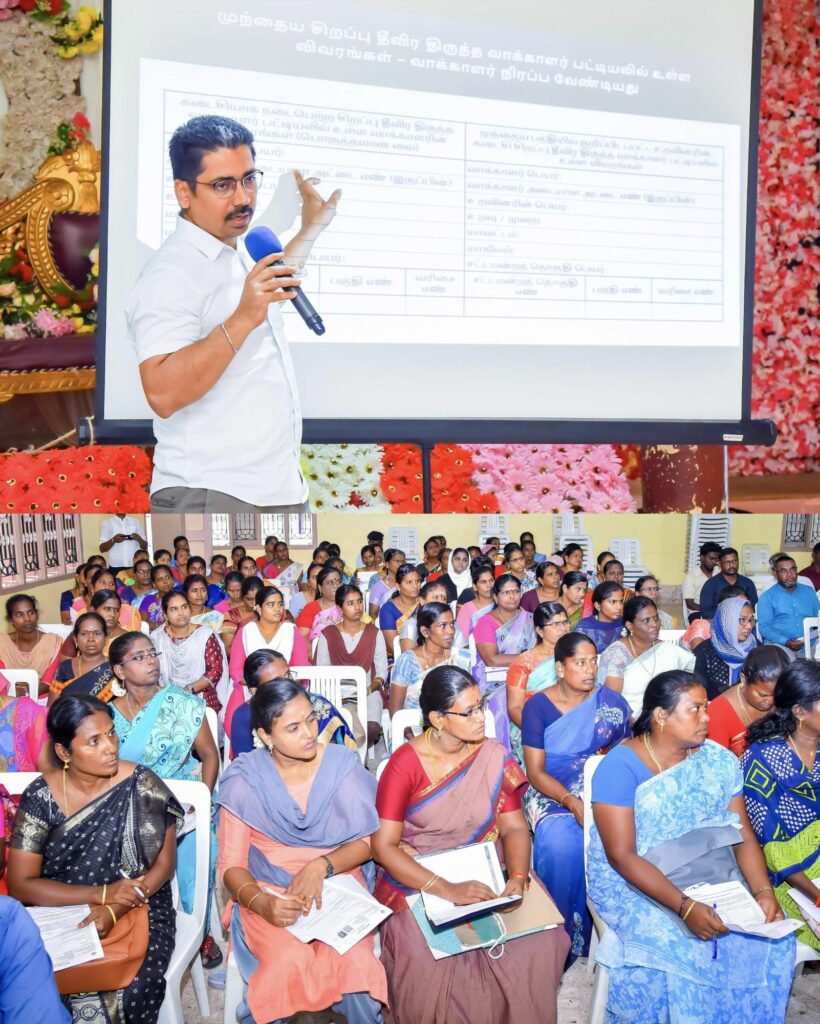 இந்திய தேர்தல் ஆணையம் வழிகாட்டுதலின்படி,வாக்காளர் பட்டியல் சிறப்பு தீவிர திருத்தம் தொடர்பான பணிகள் நடைபெற உள்ளது. இப்பணியில் ஈடுபட்டுள்ள வாக்குச்சாவடி நிலைய அலுவலர்கள் (BLO) தங்களுக்கு ஒதுக்கீடு செய்யப்பட்ட பணிகளை சிறப்புடன் கையாண்டு வாக்காளர் பட்டியலில் சிறப்பு தீவிர திருத்தம் தொடர்பான பணிகளை நல்ல முறையில் முடித்திட வேண்டும்.