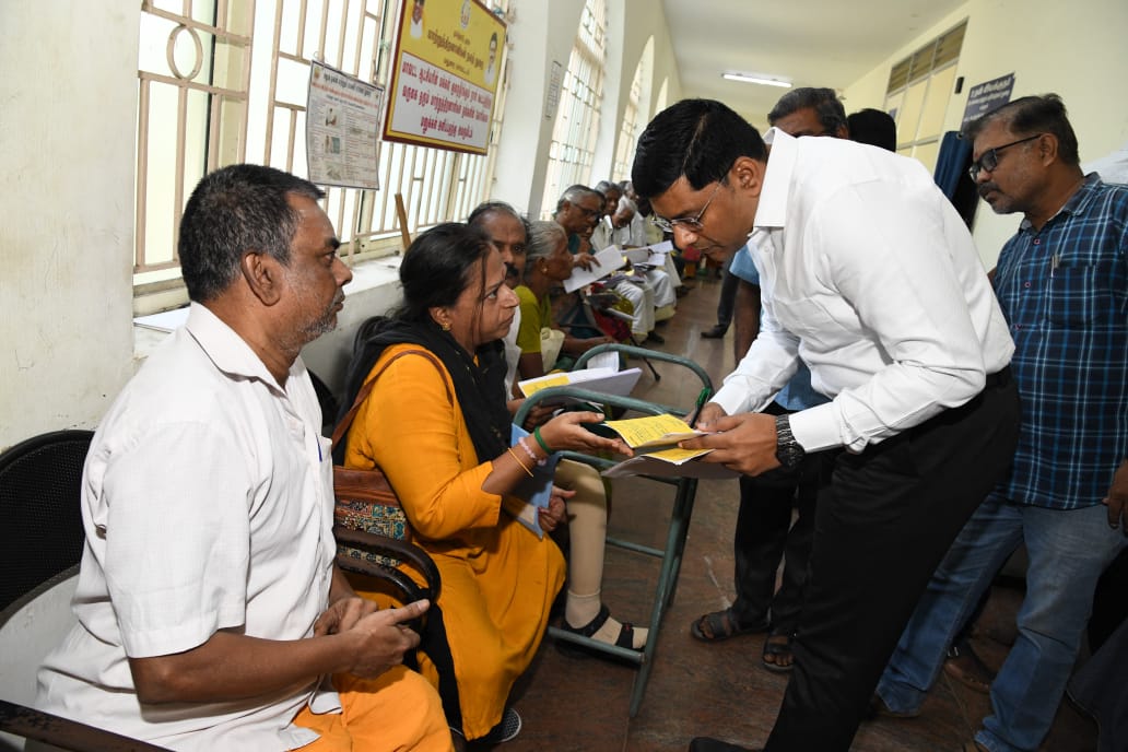 திறனாளிகள் மற்றும் மூத்த குடிமக்களுக்காக அமைக்கப்பட்டுள்ள சிறப்பு அமருமிடத்திற்குச் நேரடியாக சென்று, கோரிக்கை மனுக்களை மாவட்ட ஆட்சியர் அவர்கள் பெற்றுக் கொண்டார்.