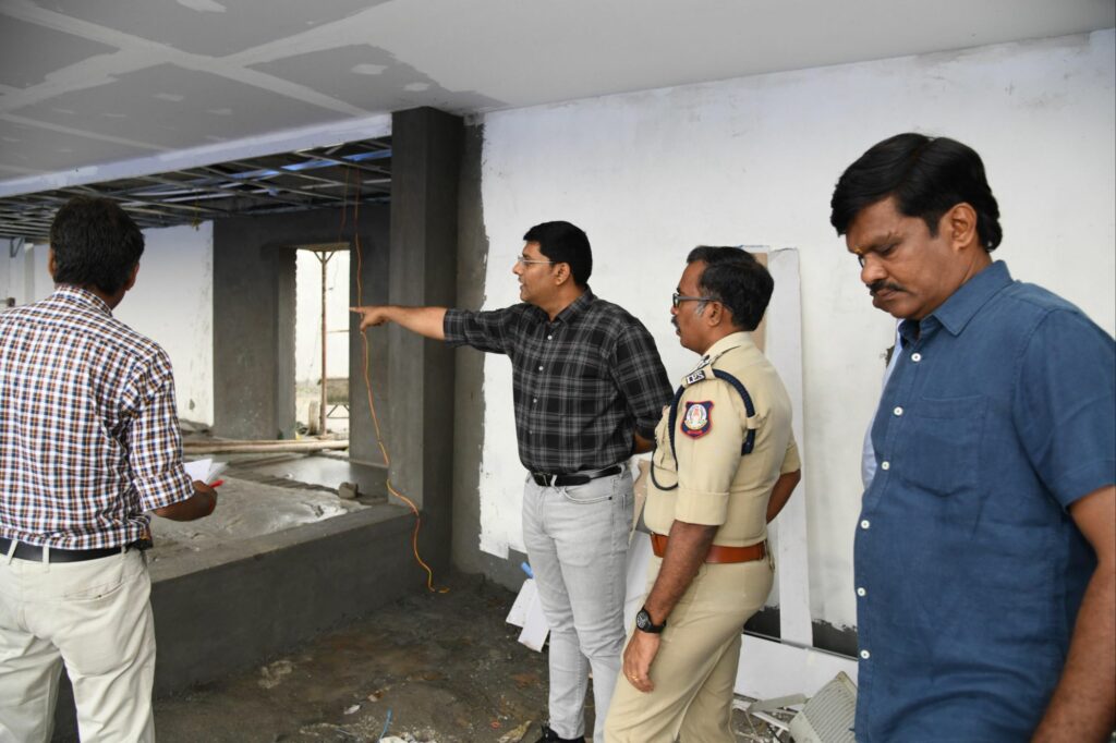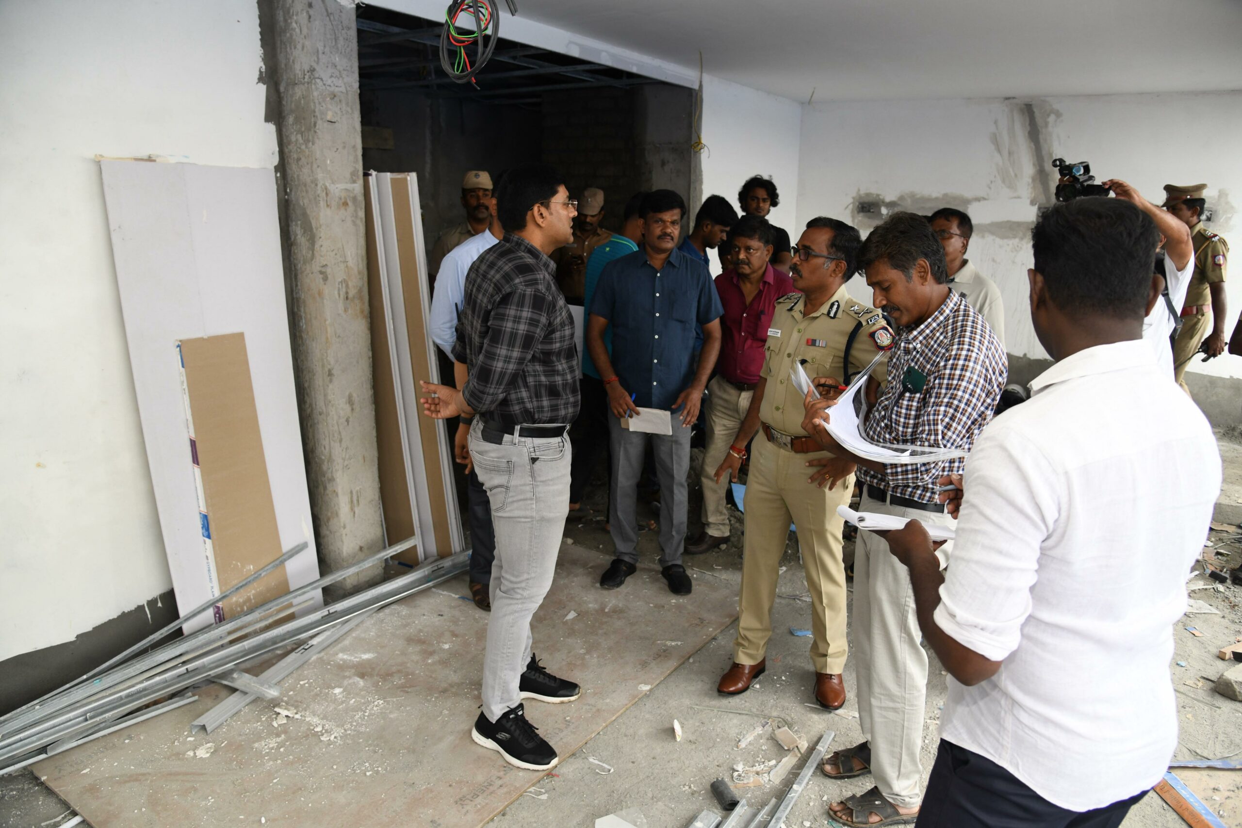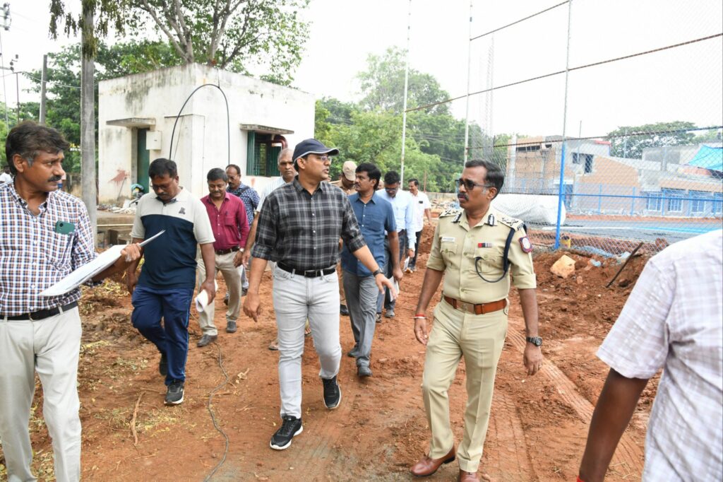 உள்ளதை முன்னிட்டு, மைதானத்தில் மேற்கொள்ளப்பட்டு வரும் முன்னேற்பாடு பணிகள் மற்றும் பாதுகாப்பு பணிகள் குறித்து ஆய்வு செய்து பார்வையிட்டார்.