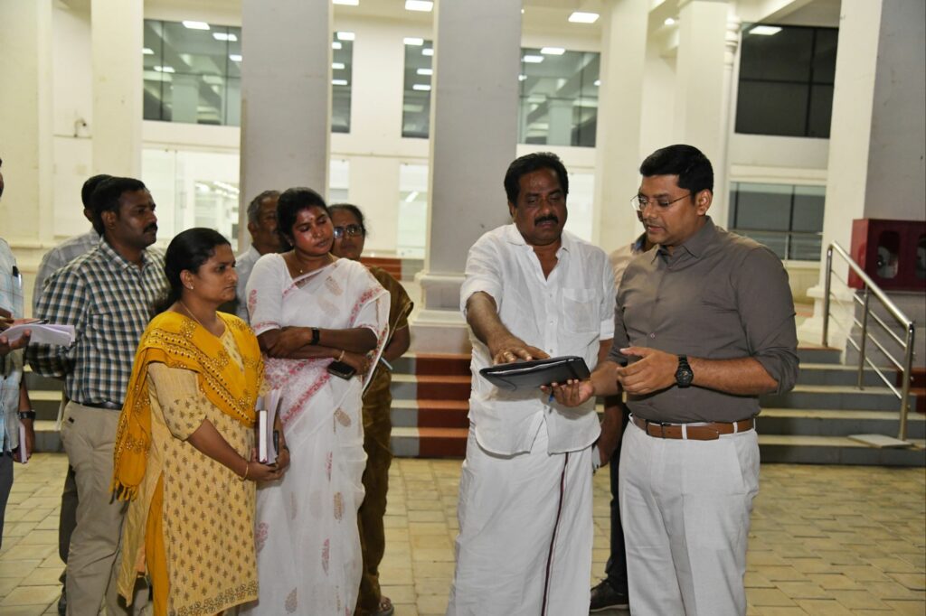 மதுரை மாவட்டம், தமுக்கம் மைதானத்தில் 22.11.2025 முதல் 03.12.2025 வரை 12 நாட்கள் நடைபெற உள்ள அகில இந்திய அளவிலான “சரஸ் மேளா” நடைபெற உள்ளதை முன்னிட்டு மேற்கொள்ளப்பட வேண்டிய முன்னேற்பாடு பணிகள் குறித்து ஆய்வு செய்தார்.