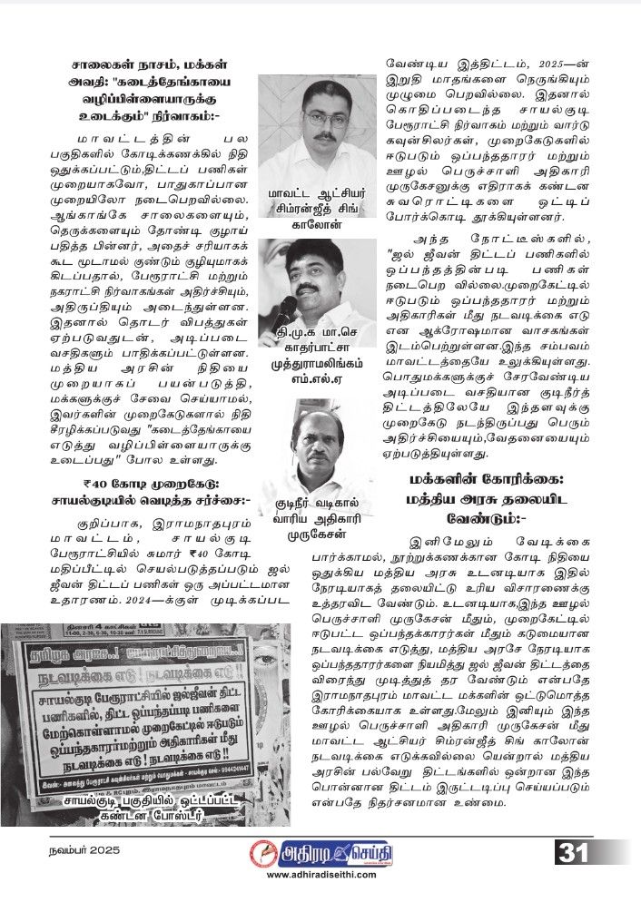 Home/தமிழகம்/இராமநாதபுரம் மாவட்டத்தில் ஜல் ஜீவன் திட்டத்தில் “ஊழல் சாக்கடை” தமிழகம்மாவட்டச் செய்திகள் இராமநாதபுரம் மாவட்டத்தில் ஜல் ஜீவன் திட்டத்தில் “ஊழல் சாக்கடை” pnknews90 Send an email 3 weeks ago0 68 Less than a minute Facebook X LinkedIn Tumblr Pinterest Reddit VKontakte Odnoklassniki Pocket pnknews90 Send an email 3 weeks ago0 68 Less than a minute Facebook X LinkedIn Tumblr Pinterest Reddit VKontakte Odnoklassniki Pocket Share Facebook X LinkedIn Tumblr Pinterest Reddit VKontakte Odnoklassniki Pocket Share via Email Print