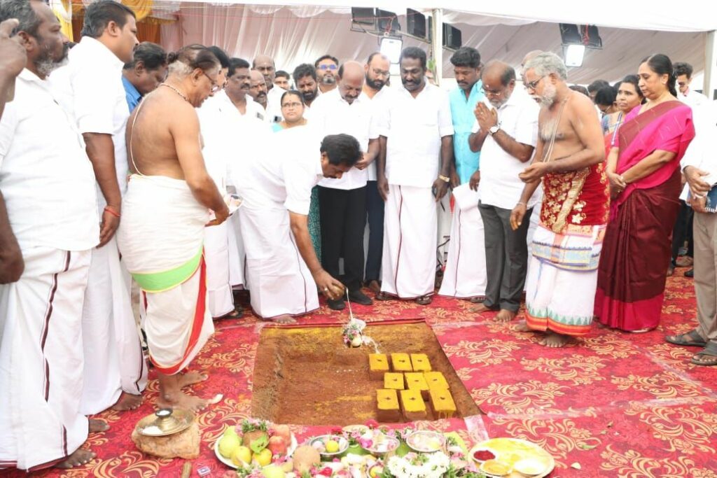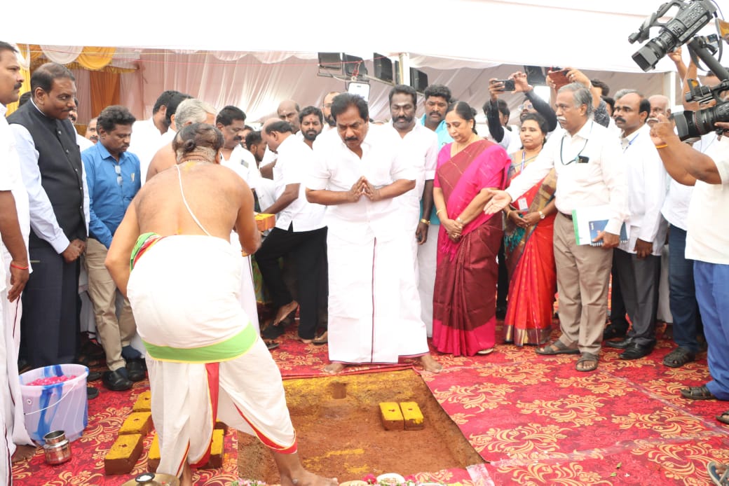 கல்லூரி மற்றும் மருத்துவமனை கட்டடங்கள் கட்டுவதற்கு அடிக்கல் நாட்டி பணிகளை துவக்கி வைத்தனர்.