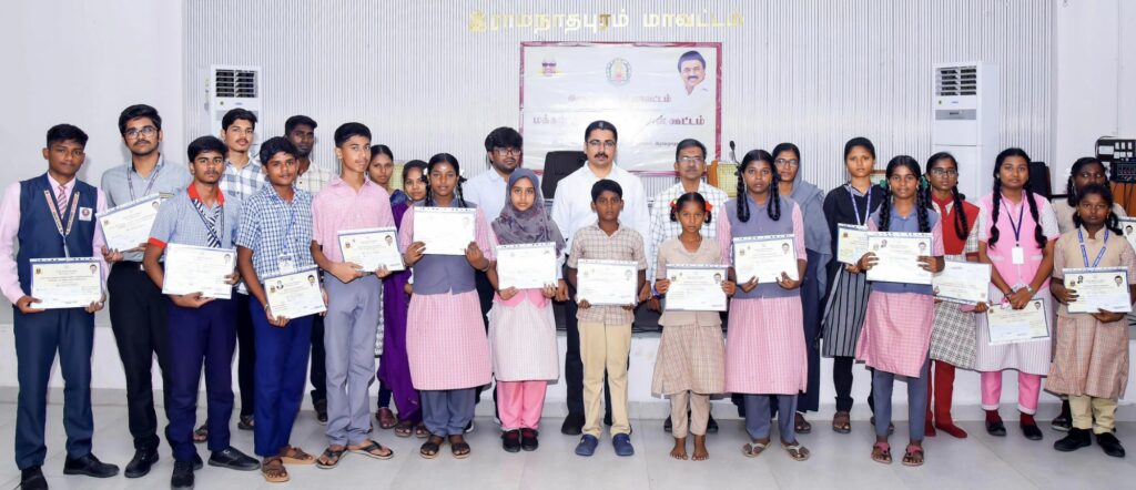 தொடர்ந்து தமிழ் வளர்ச்சித்துறையின் மூலம் பேரறிஞர் அண்ணா, தந்தை பெரியார்,மகாத்மா காந்தியடிகள், ஜவஹர்லால் நேரு ஆகியோரின் பிறந்த தினத்தை முன்னிட்டு மாவட்ட அளவில் பள்ளி மற்றும் கல்லூரி மாணவ, மாணவிகளுக்கு நடைபெற்ற பேச்சுப்போட்டி,கவிதைப் போட்டியில் வெற்றி பெற்ற மாணவ,மாணவிகளுக்கு பாராட்டுச்சான்று மற்றும் பரிசுத்தொகைக்காண காசோலையினை மாவட்ட ஆட்சித்தலைவர் சிம்ரன்ஜீத் சிங் காலோன் வழங்கி வெற்றி பெற்ற மாணவ,மாணவிகளை பாராட்டினார்.