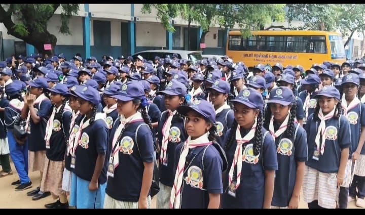 இந்த ஆண்டு 50 வது ஆண்டு பொன்விழாவை கொண்டாடும் நிலையில் நாளை முப்பெரும் விழாவாக உசிலம்பட்டி நாடார் சரஸ்வதி மேல்நிலைப்பள்ளியில் நடைபெறுகிறத., இவ்விழாவில் பள்ளி கல்வித்துறை அமைச்சர் அன்பில் மகேஸ் பொய்யாமொழி சிறப்பு விருந்தினராக கலந்து கொண்டு சிறப்பிக்கும் நிலையில், இந்த முப்பெரும் விழாவின் துவக்கமாக இன்று உசிலம்பட்டி கல்வி மாவட்ட அளவிலான 30 பள்ளிகளைச் சேர்ந்த 800 க்கும் மேற்பட்ட சாரண சாரணியர் இயக்க மாணவ மாணவிகள் சமூக பதௌ விழிப்புணர்வு பேரணியில் ஈடுபட்டனர்.