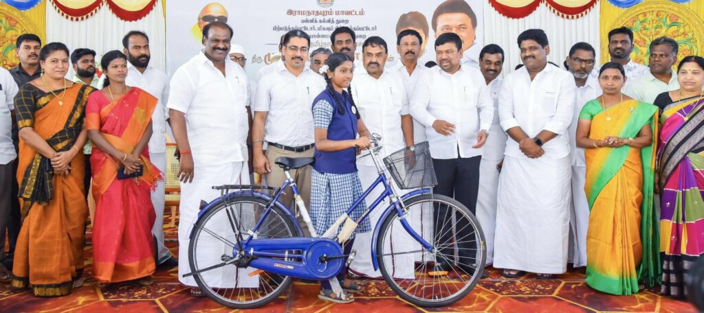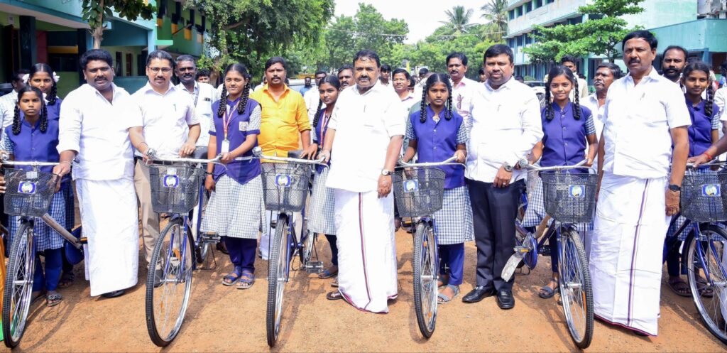 மாண்புமிகு தமிழ்நாடு முதலமைச்சர் அவர்கள் கல்விக்கு சிறப்பு கவனம் எடுத்து பல்வேறு நலத்திட்டங்களை வழங்கி வருகிறார்கள்.காரணம் கல்வி ஒவ்வொரு மாணவ செல்வத்திற்கும் நிலையான சொத்தாக இருந்து வருகிறது. ஒருவர் முழுமையான கல்வி பெற்றால் அவர் வாழ்வில் எல்லா நிலையிலும் முன்னேற்றம் காண முடியும்.அத்தகைய முன்னேற்றத்திற்கான கல்வியை அனைவரும் முழுமையாக பெற வேண்டும் என்ற நோக்குடன் மாண்புமிகு தமிழ்நாடு முதலமைச்சர் அவர்கள் பல்வேறு திட்டங்களை வழங்கி வருகிறார்கள்.அதனடிப்படையில் ஒவ்வொரு ஆண்டும் அரசு மற்றும் அரசு உதவி பெறும் மேல்நிலை முதலாம் ஆண்டு படிக்கும் மாணவ, மாணவிகளுக்கு விலையில்லா மிதிவண்டி வழங்கப்படுகிறது.