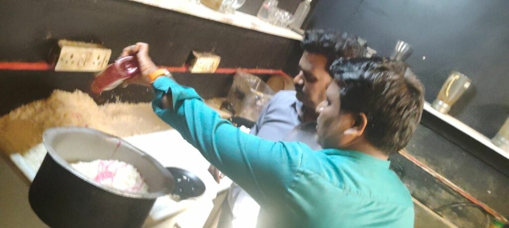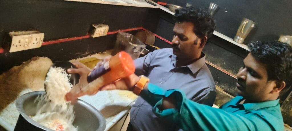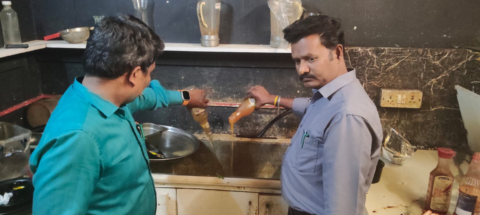 மேலும் கிச்சன் ஆய்வு செய்யும்பொழுது சுகாதாரமற்ற முறையில் இருந்தது.காலாவதியான சாஸ் ஐட்டங்கள் சுமார் எட்டு பாட்டில் காணப்பட்டது.அவை அங்கிருந்து அப்புறப்படுத்தி அழிக்கப்பட்டது.தண்ணீர் ஓடுவதற்கு வழியில்லாமல் உள்ளே சுத்தம் இல்லாமல் காணப்பட்டது.குளிர்சாதன பெட்டியில் காய்கறிகள்,சிக்கன் இவை எல்லாம் தனித்தனியாக வைக்காமல் ஒரே இடத்தில் வைக்கப்பட்டிருந்தது.மேலும் அந்த கடையின் உரிமையாளருக்கு நோட்டீஸ் வழங்கப்பட்டு உணவு மாதிரிகள் எடுக்கப்பட்டு கடைக்கு அபராதம் விதிக்கப்பட்டுள்ளது.
