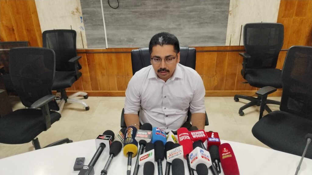 இராமநாதபுரம் மாவட்ட ஆட்சியர் அலுவலக கூட்டரங்கில் மாவட்ட தேர்தல் அலுவலர் மாவட்ட ஆட்சித்தலைவர் சிம்ரன்ஜீத் சிங் காலோன் தலைமையில் வாக்காளர் பட்டியலில் சிறப்பு தீவிர திருத்தம் தொடர்பான கணக்கீட்டு படிவம் பூர்த்தி செய்வது குறித்து செய்தியாளர் சந்திப்பு நடைபெற்றது.