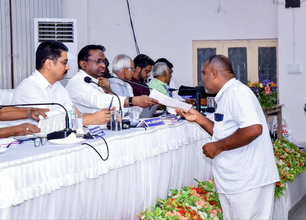 மாவட்ட ஆட்சித்தலைவர் சிம்ரன்ஜீத் சிங் காலோன்,தமிழ்நாடு மாநில சிறுபான்மையினர் ஆணையத் துணைத்தலைவர் எம்.எம்.அப்துல் குத்தூஸ் என்ற இறையன்பன் குத்தூஸ் மற்றும் தமிழ்நாடு மாநில சிறுபான்மையினர் ஆணைய உறுப்பினர்கள் ஆகியோர் முன்னிலையில்,தமிழ்நாடு மாநில சிறுபான்மையினர் ஆணையத்தலைவர் அருட்தந்தை சொ.ஜோ.அருண்,சே.ச தலைமையில் சிறுபான்மையினர் நலத்துறையின் மூலம் செயல்படுத்தப்பட்டு வரும் திட்டங்கள் குறித்து ஆய்வு செய்ததுடன்,கலந்தாய்வுக் கூட்டத்தில் சிறுபான்மையின் அமைப்பு பிரதிநிதிகள் மற்றும் பொதுமக்களிடம் கோரிக்கைகள் குறித்து கேட்டறிந்து, கோரிக்கைகள் தொடர்பான மனுக்களை பெற்று பேசினார்.