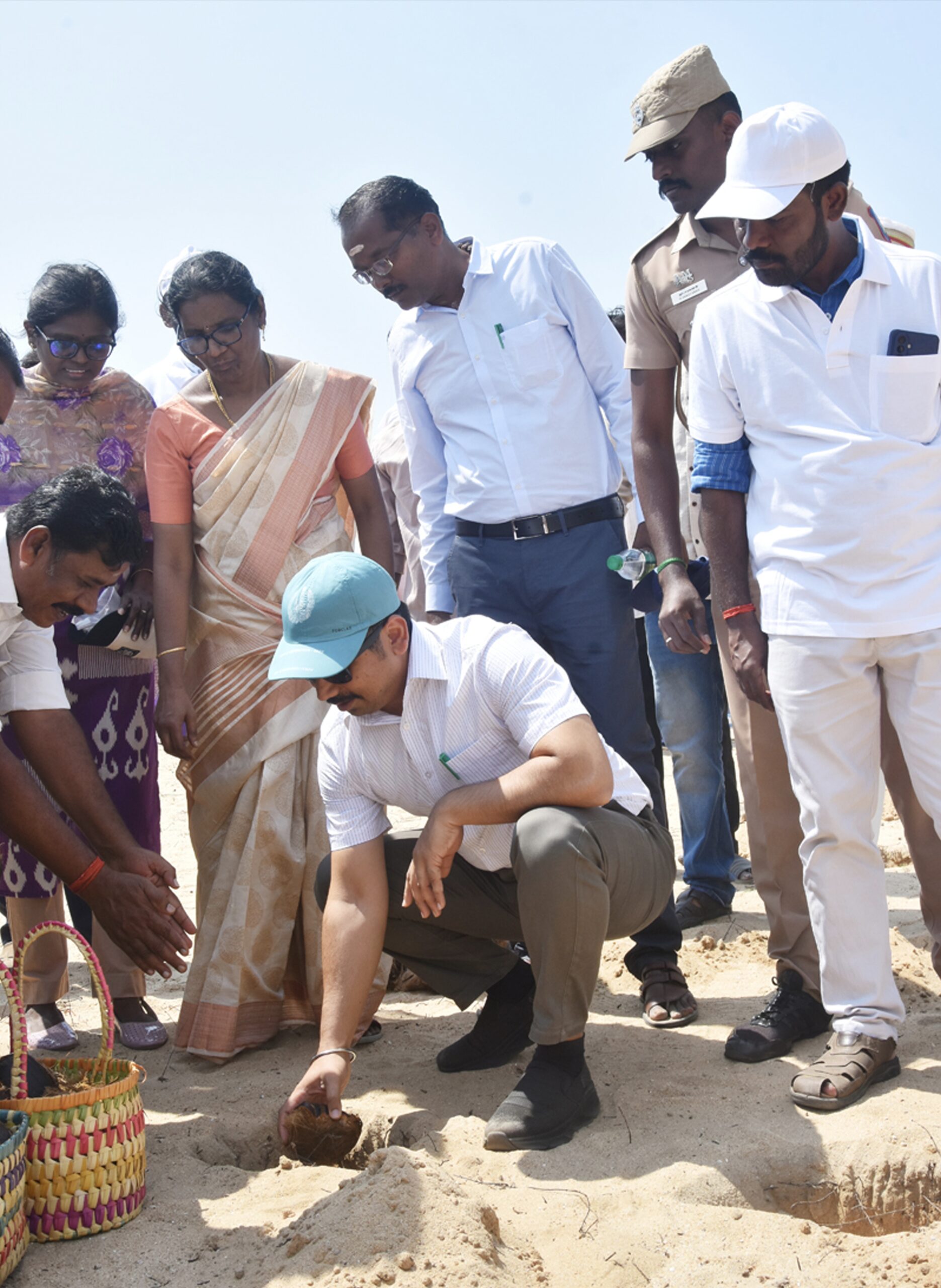 இராமநாதபுரம் மாவட்டம்,மண்டபம் ஊராட்சி ஒன்றியம்,மானாங்குடி கடற்கரை பகுதியில் மாவட்ட கலெக்டர் சிம்ரன்ஜீத் சிங் காலோன் கூட்டுறவுத்துறையின் மூலம் பனை விதைகளை நடவு செய்யும் பணிகளை தொடங்கி வைத்து பார்வையிட்டார்.