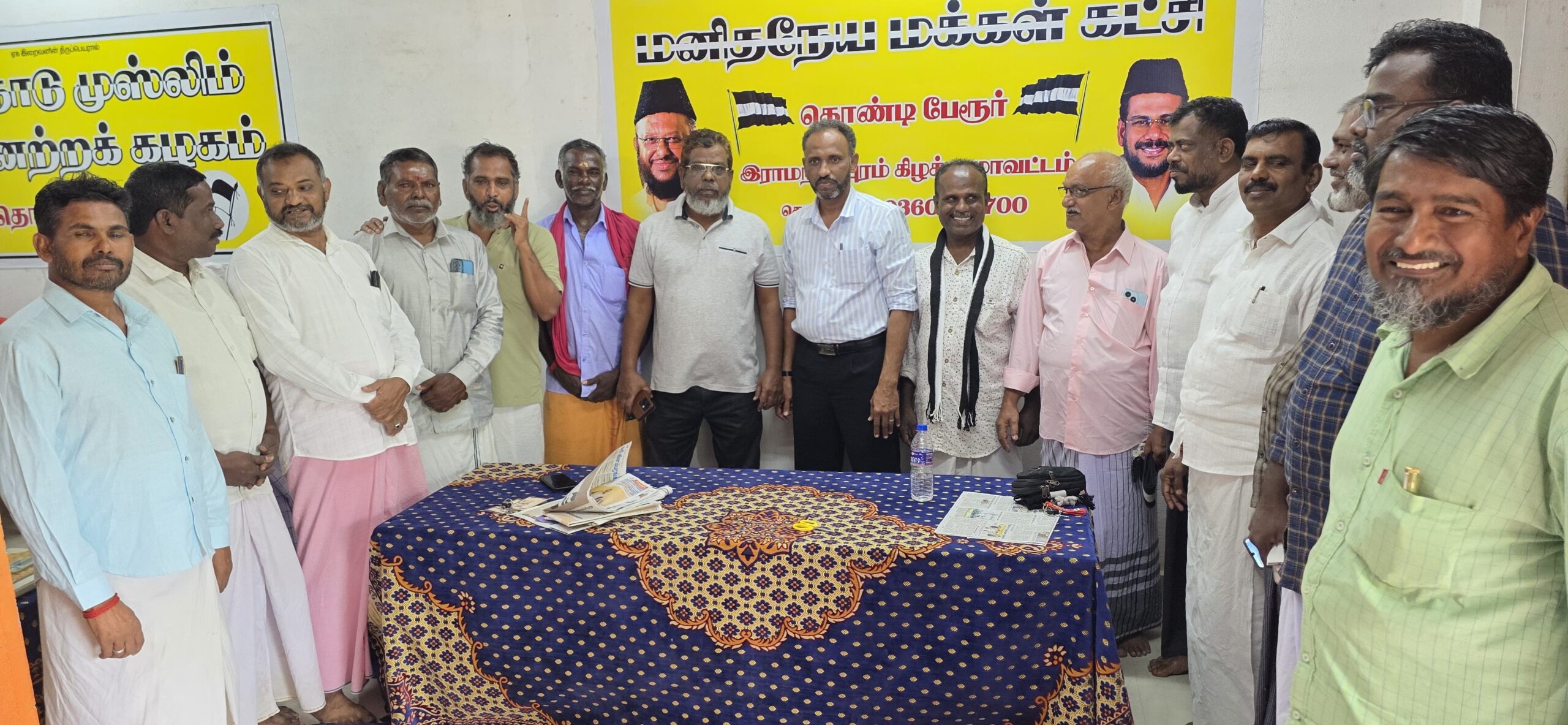 ஸ்டாலின் சட்டமன்றத்தில் தொகுதிக்கு ஒரு ஸ்டேடியம் கொண்டுவரப்படும் அறிவிப்பு செய்தார்.அதன் அடிப்படையில் பல்வேறு தொகுதிகளுக்கு ஸ்டேடியம் ஒதுக்கப்பட்டு அதற்கான பணிகள் நடந்து கொண்டிருக்கின்றது.ஆனால் திருவாடானை சட்டமன்றத்தில் எல்லை பிரச்சினை காரணமாக திருவாடானை சட்டமன்ற தொகுதியில் எல்லையில் இராமநாதபுரத்தில் இருக்கின்ற ஸ்டேடியத்தை காட்டி திருவாடானை தொகுதிக்கு ஒதுக்கிய ஸ்டேடியம் எல்லை பிரச்சினை காரணமாக வேறு இடத்திற்கு மாற்றப்பட்டுள்ளது.அரசு கருணையோடு திருவாடானை தொகுதியில் தொண்டியில் அதற்கான இடம் இருக்கிறது.தமிழக அரசு மினி ஸ்டேடியம் தொண்டியில் கொண்டு வருவதற்கு ஆவண செய்ய வேண்டும்.மேலும் பள்ளி கல்வித்துறை சார்பாக ஒரு மினி ஸ்டேடியம் தொண்டி சையது முகமது அரசு மேல்நிலைப்பள்ளி மைதானத்தில் கட்டுவதற்கு ஆவண செய்யுமாறு தமிழக அரசை அன்போடு கேட்டுக்கொள்கின்றோம் என்பது உள்ளிட்ட பல்வேறு தீர்மானங்கள் நிறைவேற்றப்பட்டது.முடிவில் மனிதநேய மக்கள் கட்சி பேரூர் செயலாளர் பரக்கத் அலி நன்றி கூறினார்.