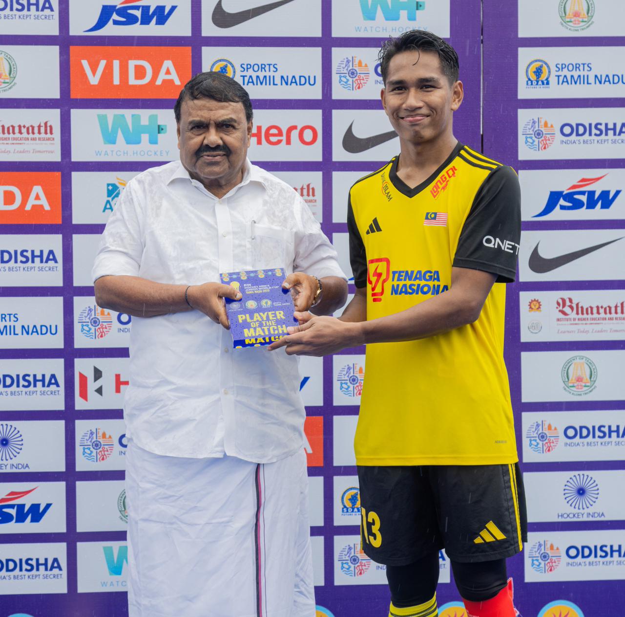 மதுரையில் உலகக்கோப்பை ஜீனியர் ஹாக்கி போட்டி:சிறப்பாக விளையாடிய வீரருக்கு அமைச்சர்,எம்.எல்.ஏ நினைவுப்பரிசு வழங்கினர்!!!
