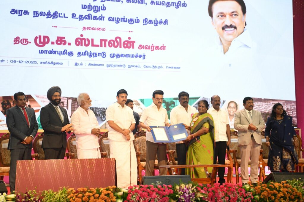 சென்னை கோட்டூர்புரம் அண்ணா நூற்றாண்டு நூலகத்தில் முதலமைச்சரின் தாயுமானவர் திட்டம்,கல்வி,சுயதொழில் மற்றும் அரசு நலத்திட்ட உதவிகள் வழங்கும் விழாவில் சாதி வேறுபாடின்றி சமூக நல்லிணக்கத்துடன் வாழும் 10 கிராம ஊராட்சிகளுக்கு சமூக நல்லிணக்க கிராம ஊராட்சிகள் விருது மற்றும் வளர்ச்சி பணிகளுக்காக தலா ரூ.1 கோடி வீதம் அந்தந்த யூனியன் பி.டி.ஓக்களிடம் வழங்கினார்.இந்த 10 கிராம ஊராட்சிகளில் இராமநாதபுரம் மாவட்டம்,திருப்புல்லாணி யூனியன் மேலமடை ஊராட்சியும் ஒன்று.அந்த ஊராட்சியில் ஆதிதிராவிடர் மற்றும் பிற்படுத்தப்பட்டோர் என அனைத்து சமுதாய மக்களும் சாதி,மத வேறுபாடின்றி அனைத்து வகையிலும் மதநல்லிணக்கத்திற்கு எடுத்துக்காட்டாக திகழ்ந்து வருகின்றனர்.அதன் படி தேர்வு செய்யப்பட்ட மேலமடை ஊராட்சிக்கு சமூக நல்லிணக்க கிராம ஊராட்சி விருது மற்றும் வளர்ச்சிப் பணிகளுக்காக ரூ.1 கோடிக்கான காசோலையை தமிழ்நாடு முதலமைச்சர் மு.க.ஸ்டாலின் திருப்புல்லாணி யூனியன் பி.டி.ஓ சே.இராஜேஸ்வரியிடம் வழங்கினார்.