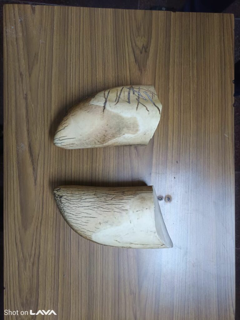 சாயல்குடி – அருப்புக்கோட்டை சாலை ஹரி குமார் (29) ஆகியோரை பிடித்து விசாரித்தனர்.இருவரும் முன்னுக்கு பின் முரணான பதில் கூறினர்.இதை தொடர்ந்து இருவர் வைத்திருந்த பையை சோதனை செய்தனர்.அதில் 2 யானை தந்தம் இருந்தன.அவற்றை பறிமுதல் செய்து காவல் நிலையம் கொண்டு வந்தனர்.அங்கு எடை போட்டு பார்த்ததில் 3 கிலோ 900 கிராம் இருந்தது.இதன் மதிப்பு ரூ. 1 கோடி என கூறப்படுகிறது.இதில் தொடர்புடைய வாலிநோக்கம் காவா குளத்தைச்சேர்ந்த ஸ்ரீராம் (26) என்பவரை பிடித்து விசாரணைக்கு பின்,மேல் நடவடிக்கைக்காக இராமநாதபுரம் வனச்சரக அலுவலகத்தில் ஒப்படைத்தனர்.