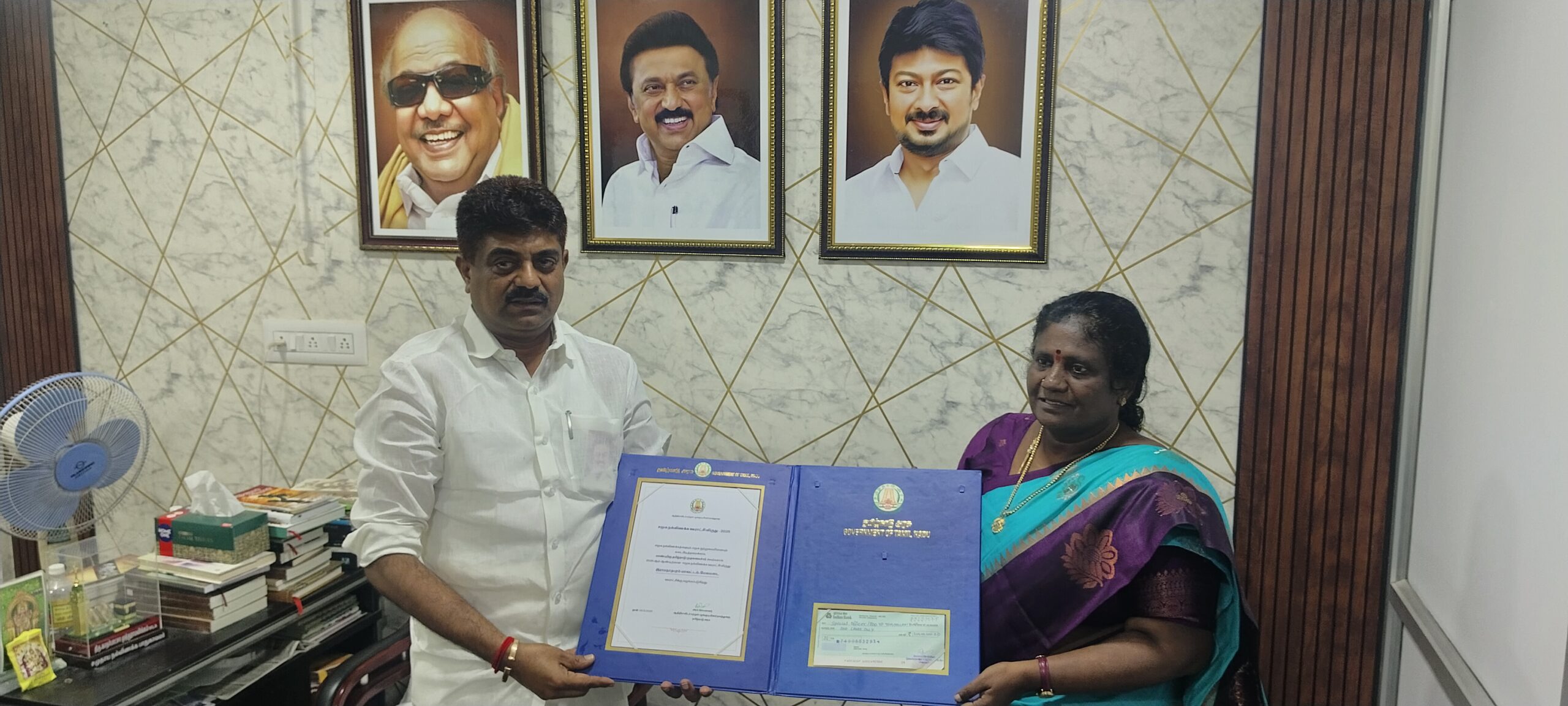 திருப்புல்லாணி யூனியன் மேலமடை ஊராட்சிக்கு சமூக நல்லிணக்க கிராம ஊராட்சிகள் விருது:காதர்பாட்சா முத்துராமலிங்கம் எம்.எல்.ஏவிடம் காண்பித்து வாழ்த்து பெற்ற பி.டி.ஓ!!!