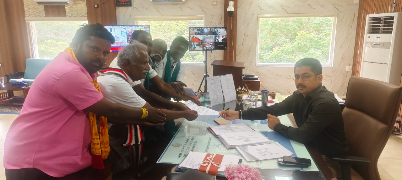 தமிழ்நாடு வைகை விவசாயிகள் சங்கம் நிறுவன தலைவர் எம்.எஸ்.கே.பாக்கியநாதன் தலைமையிலான விவசாயிகள் இராமநாதபுரம் மாவட்ட கலெக்டர் சிம்ரன்ஜீத் சிங் காலோனை சந்தித்து மனு ஒன்றை அளித்தனர்.