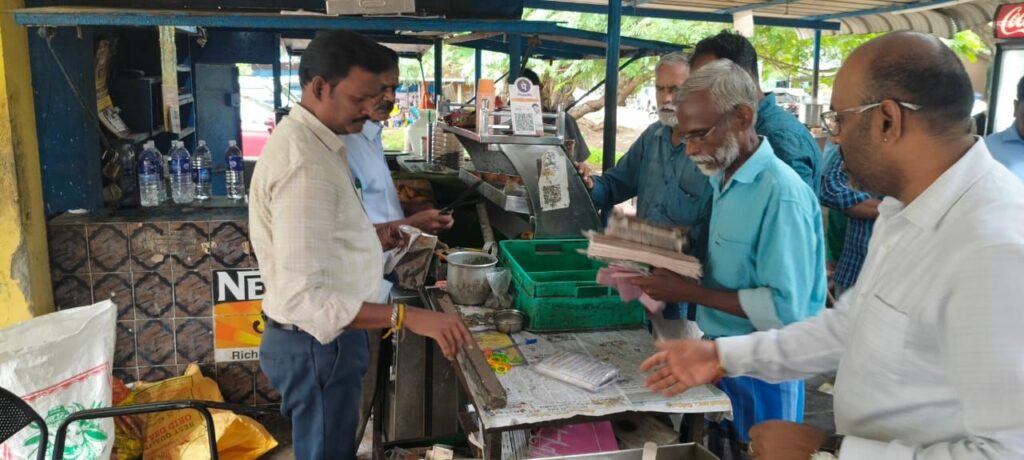 ஆய்வின் போது அந்த கடையில் வடை,பஜ்ஜி,போண்டா போன்ற எண்ணெய் பலகாரங்களை செய்தித்தாளில் வைத்து வழங்கக் கூடாது என்றும்,பிளாஸ்டிக் கவரில் உணவு பொருட்களை பார்சல் செய்து கொடுக்கக் கூடாது என்றும்,வடை,பஜ்ஜி போடும் இடம் சுத்தமாகவும் மற்றும் கடையினை சுற்றி சுற்றுப்புறத்தை சுகாதாரமாக வைத்துக் கொள்ள வேண்டும் என வலியுறுத்தி அந்த கடையின் உரிமையாளருக்கு உணவு பாதுகாப்புத் துறையின் மூலம் நோட்டீஸ் வழங்கப்பட்டு அபராதம் விதிக்கப்பட்டுள்ளது.