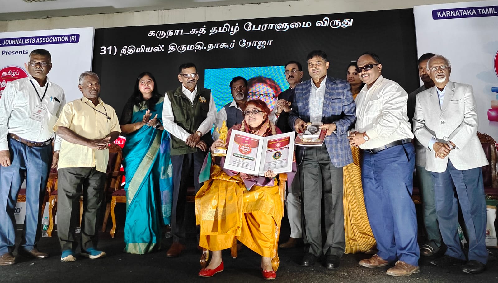 அதை தொடர்ந்து கர்நாடக மாநிலத்தில் பல்வேறு துறைகளில் சாதனை படைத்த தமிழ்ச் சான்றோர்களுக்கு விருதுகள் வழங்கப்பட்டன. பெங்களூருவில் வாழும் 105 வயது திராவிட இயக்க மூத்த முன்னோடி வி.மு.வேலுவுக்கு கர்நாடக தமிழ்ப் பெருந்தகை விருது வழங்கப்பட்டது. மேலும் 42 பேருக்கு கர்நாடக தமிழ் ஆளுமை விருது வழ கப்பட்டது. விழாவில் சிறப்பு விருந்தினராக கர்நாடக மாநில தொழில் துறை முதன்மை செயலாளர் டாக்டர் எஸ். செல்வகுமார் கலந்து கொண்டு, விருதுகள் வழங்கி சிறப்புரை ஆற்றினார்.