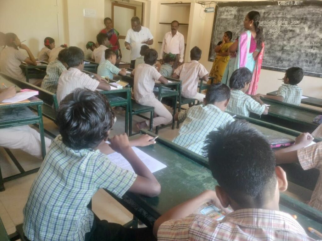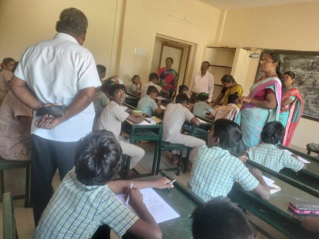 மாணவர்களின் கற்றல்,கற்பித்தல் திறன் பயிற்சி,சுற்றுப்புற சூழல்,மாணவர்களின் பாதுகாப்பு ஆகியவற்றை ஆய்வு செய்தார்.மேலும் அரையாண்டு தேர்வு எழுதும் மாணவர்களிடம் சென்று வினாத்தாள் முறையாக வழங்கப்பட்டு தேர்வு நடைபெறுகிறதா? என்று சோதனை செய்தார்கள்.