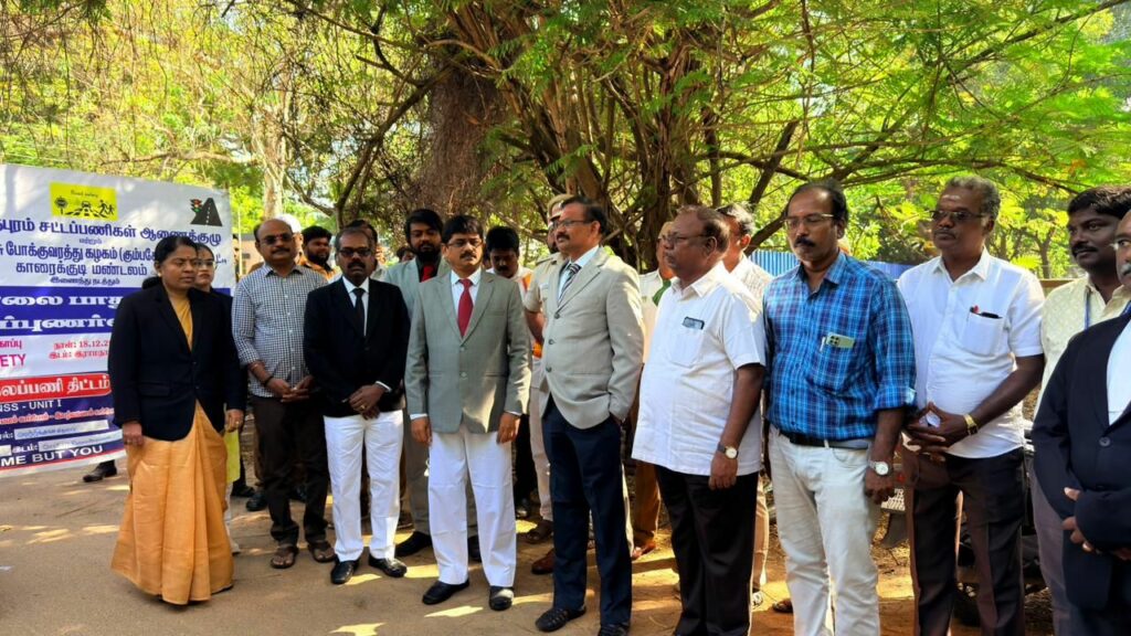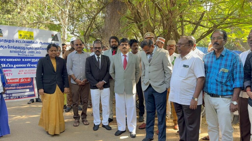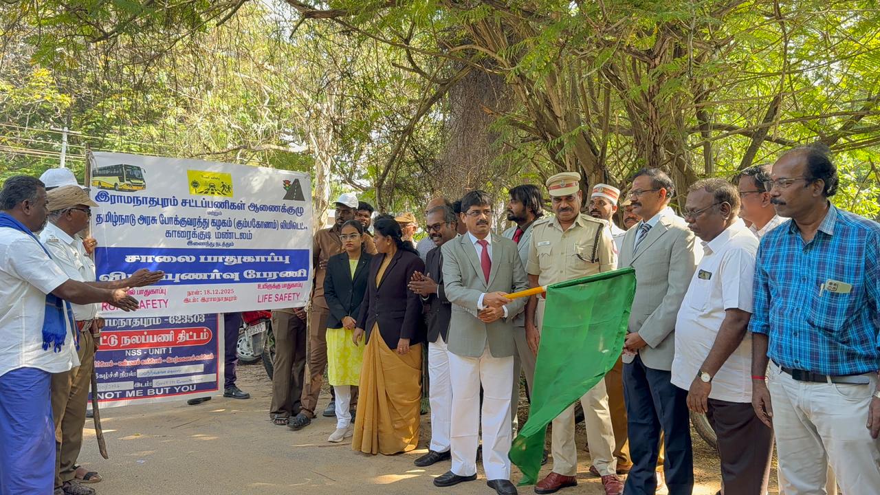 இராமநாதபுரம் மாவட்ட கலெக்டர் அலுவலக வளாகத்தில் இராமநாதபுரம் மாவட்ட சட்டப்பணிகள் ஆணைக்குழு மற்றும் தமிழ்நாடு அரசு போக்குவரத்து கழகம் (கும்பகோணம் லிமிடெட்) காரைக்குடி மண்டலம் இணைந்து நடத்திய சாலை பாதுகாப்பு விழிப்புணர்வு பேரணியை மாவட்ட சட்டப்பணிகள் ஆணைக்குழு தலைவர்,மாவட்ட முதன்மை நீதிபதி மெஹபூப் அலிகான் கொடியசைத்து வைத்தார்.