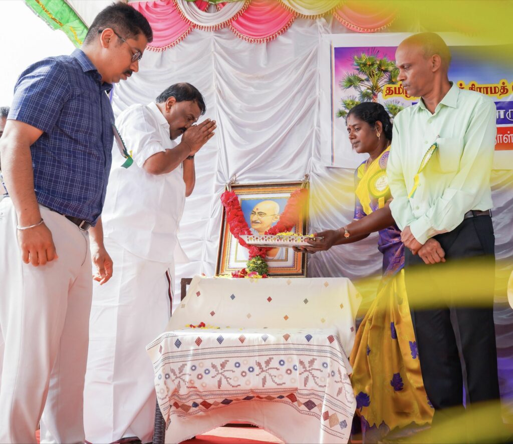 முன்னதாக அமைச்சர் ஆர்.எஸ்.ராஜகண்ணப்பன் அண்ணல் மகாத்மா காந்தியடிகளின் திருவுருவப்படத்திற்கு மலர்தூவி மரியாதை செலுத்தியதுடன், புதிய திட்டப்பணிகளுக்கு அடிக்கல் நாட்டி வைத்து, மரக்கன்றுகள் நடவு செய்து துவக்கி வைத்தார்.