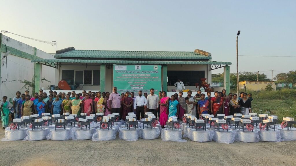 இதன் மூலம் பனை ஓலைத் தொழிலில் ஈடுபட்டுள்ள பெண்களின் பணிப்பழுவைக் குறைக்கவும்,உற்பத்தியை அதிகரித்து அவர்களின் வாழ்வாதாரத்தை மேம்படுத்தவும் முடியும்.இந்த நிகழ்ச்சியில் பனை ஓலை தயாரிக்கும் திரளான பெண்கள் கலந்து கொண்டு இலவச பனை ஓலை கருவித் தொகுப்புகள் மற்றும் இயந்திரங்களை வாங்கி சென்றனர்.