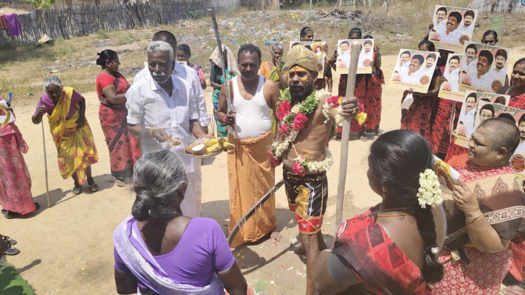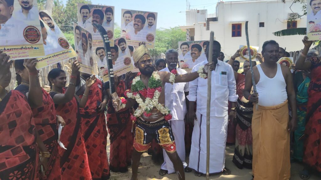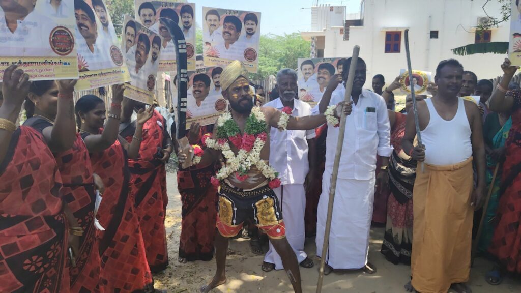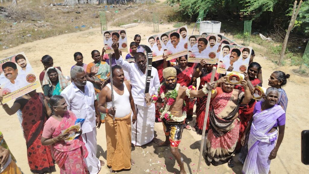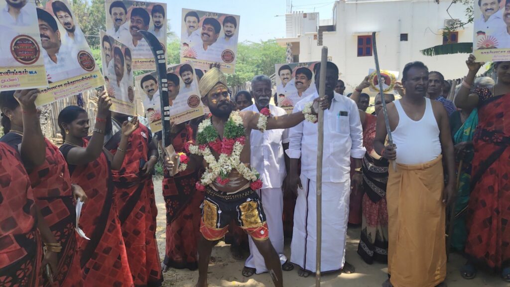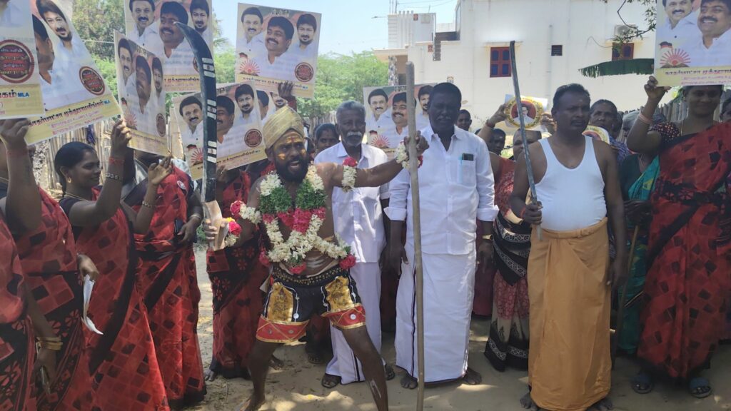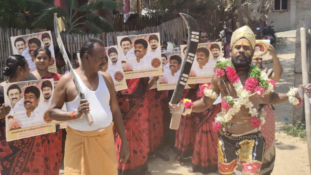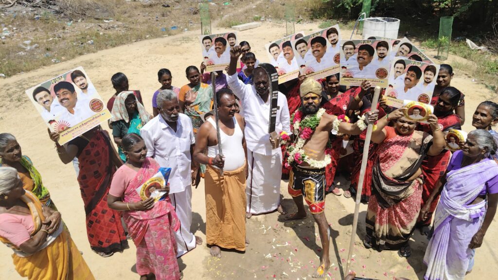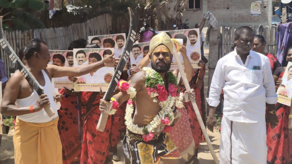 திமுகவி-ற்கு வாக்கு சேகரித்த நவீன கருப்புசாமி!!!