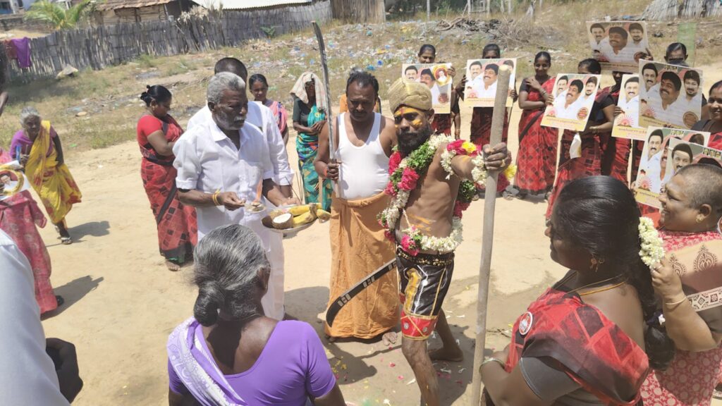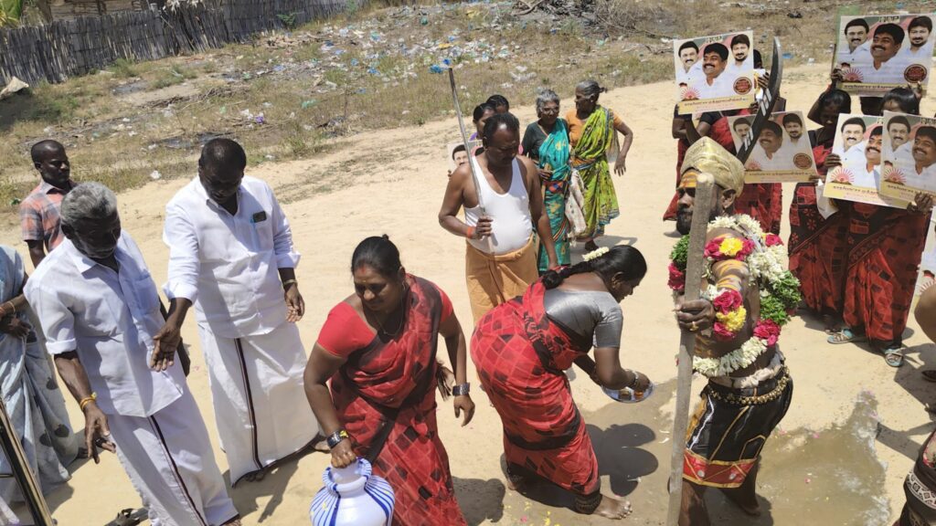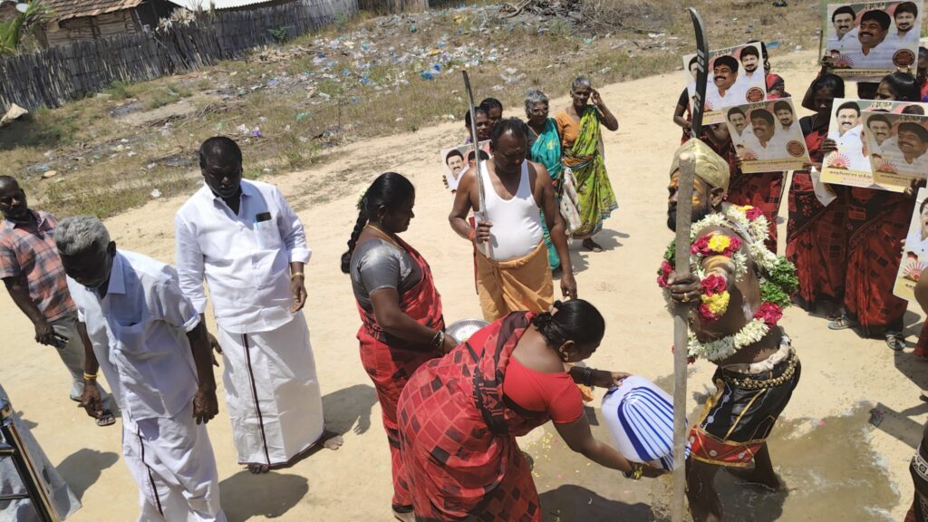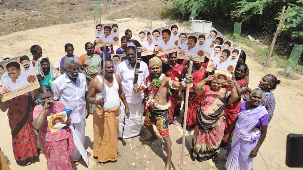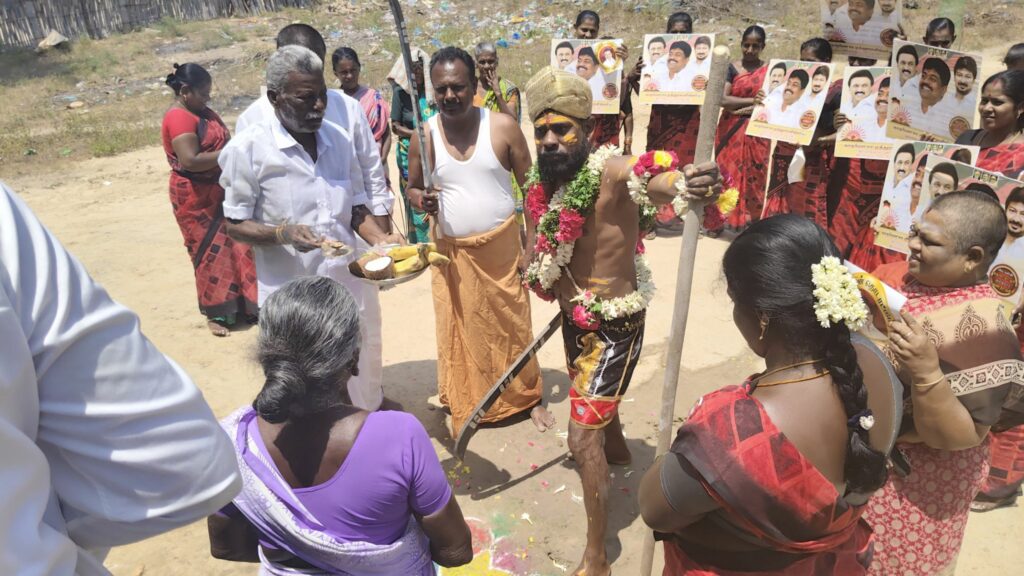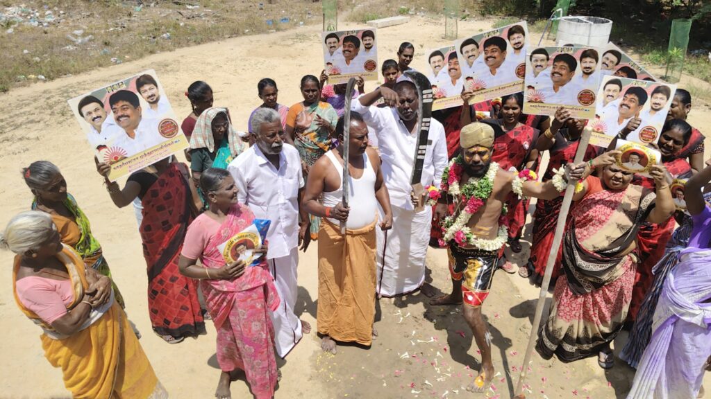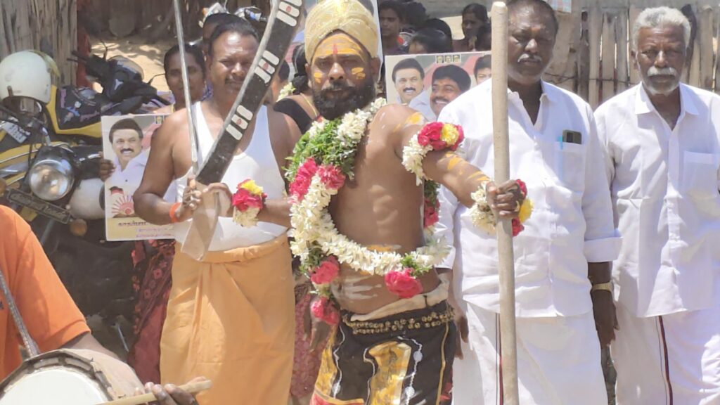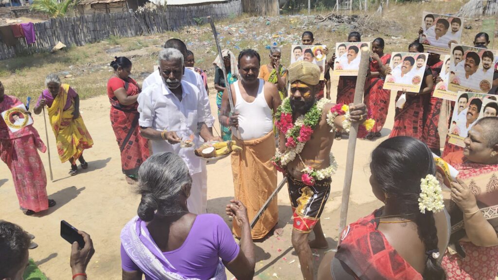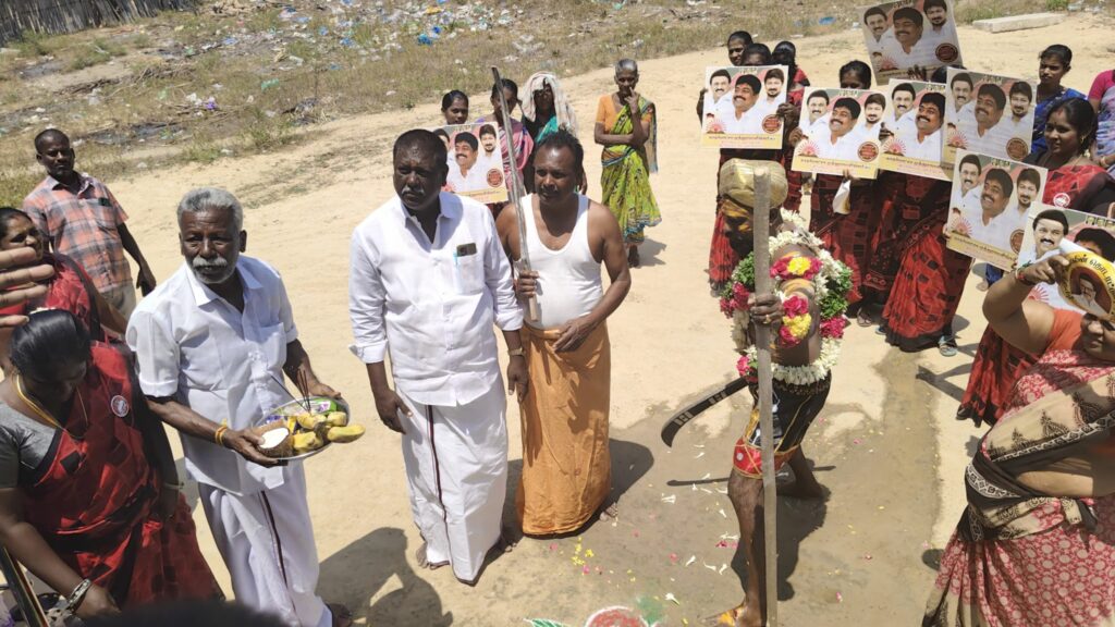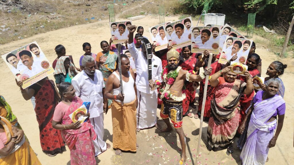 திமுகவி-ற்கு வாக்கு சேகரித்த நவீன கருப்புசாமி!!!