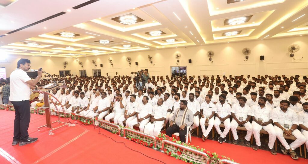 இன்று இந்தியாவில் பல கட்சிகள் பூத் கமிட்டி அமைப்பதற்கே திண்டாடிக்கொண்டு, திணறிக் கொண்டிருக்கிறார்கள். ஆனால் நம் தி.மு.க-வில் இளைஞர் அணியில் மட்டும்தான் இன்று பூத்துக்கு ஒரு நிர்வாகியை நாம் நியமித்திருக்கிறோம். பூத்துக்கு ஒரு நிர்வாகியை நியமித்துவிட்டோம், மிகப்பெரிய ஒரு இளைஞர் படையைக் கட்டமைத்திருக்கிறோம், ஒரு குழுவை உருவாக்கிவிட்டோம். அவர்களைத் தேர்தல் என்கிற ஜனநாயகப் போருக்கு அவர்களைத் தயார்படுத்த வேண்டும் என்பதற்காகத்தான் உங்களையெல்லாம் சந்திப்பதற்கு நான் வந்திருக்கிறேன்.